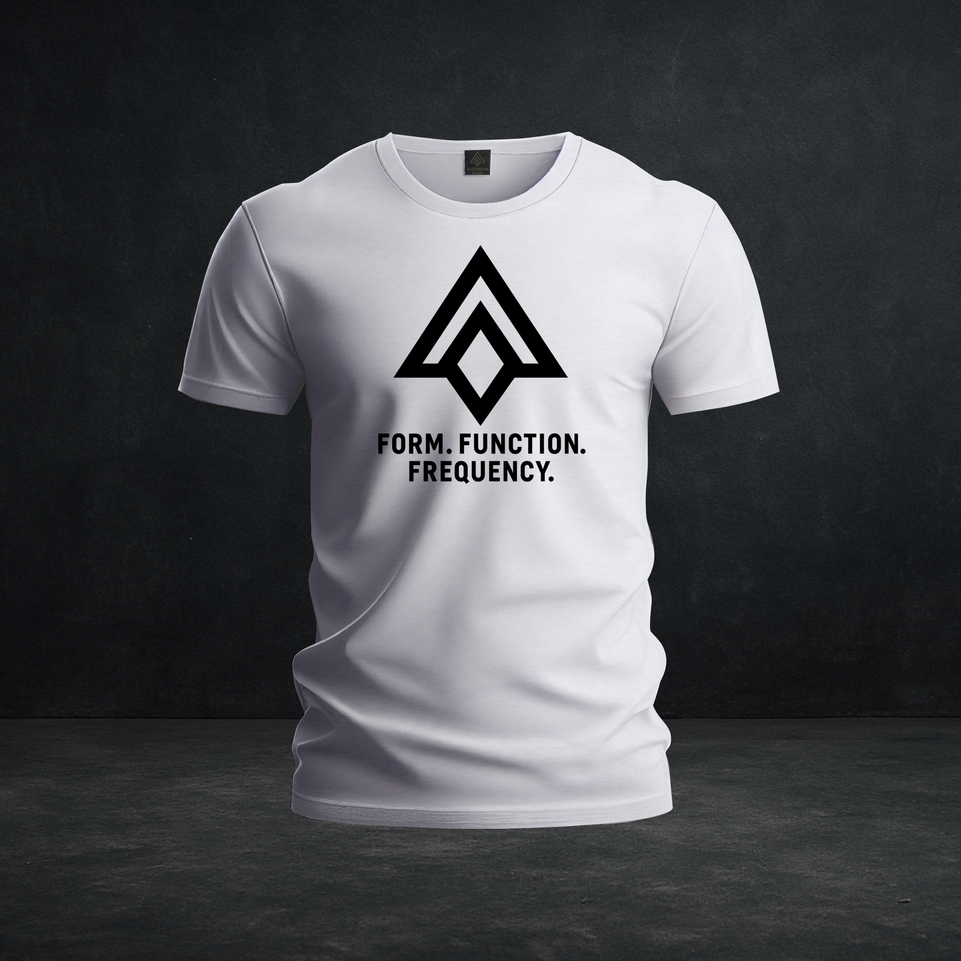 Elevate your energy with the Form. Function. Frequency. Tee, featuring a bold geometric ascension symbol paired with a clean, modern mantra. Designed for those who train with intention, live with purpose, and move with discipline, this shirt embodies the harmony between structure, strength, and vibration.