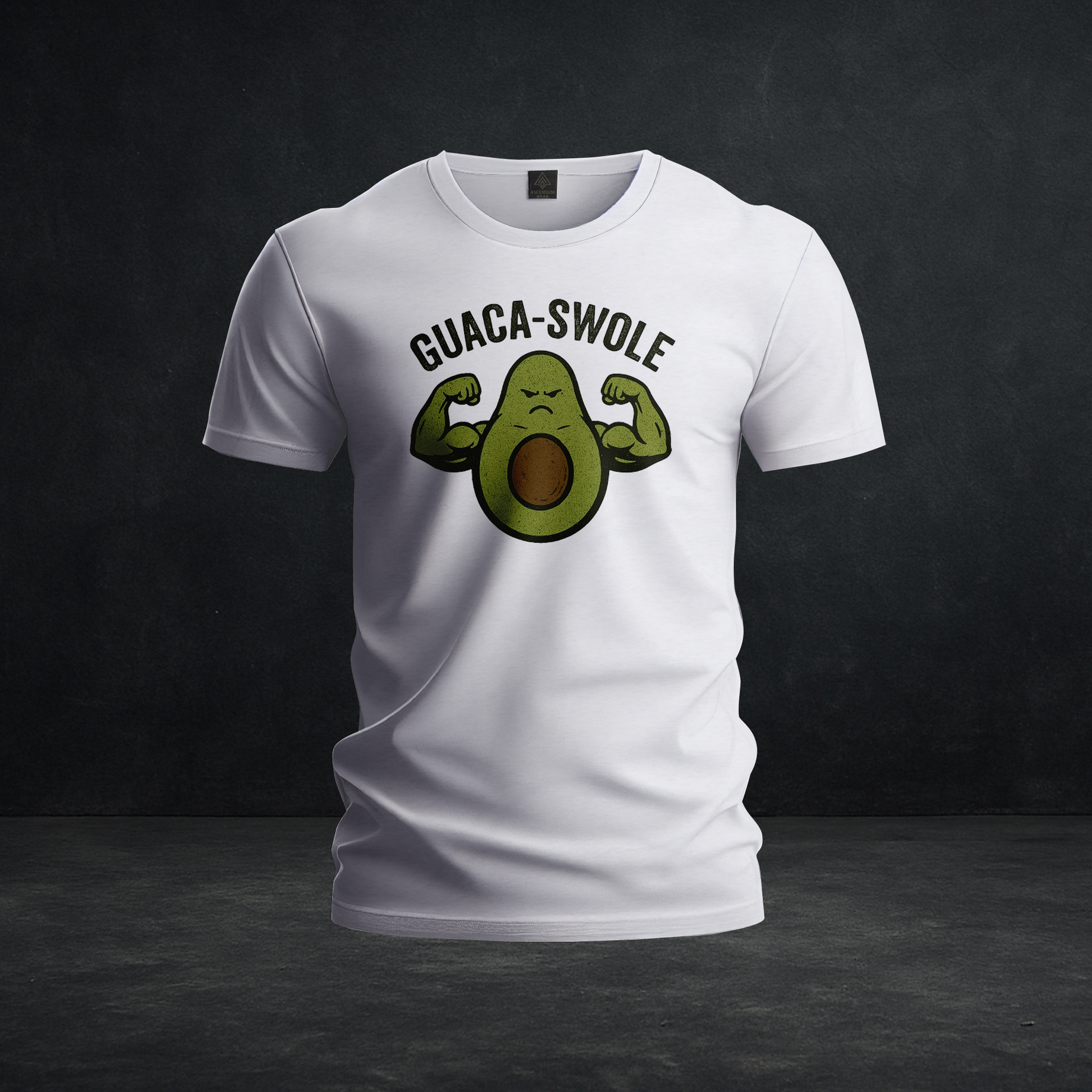 Meet the toughest fruit in the gym. The Guaca-Swole tee features a gritty, distressed illustration of a flexing avocado with a mean mug and massive biceps — the perfect mix of humor and hardcore gym energy. Whether you lift heavy, love guacamole, or just want a shirt that gets laughs and compliments, this design delivers.